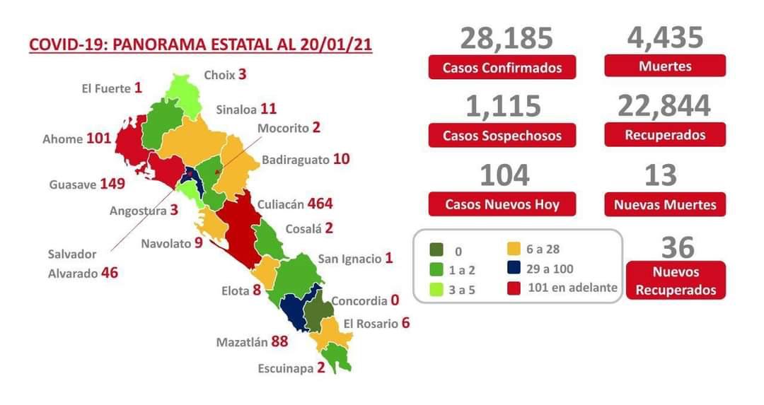 ⚠Miércoles 20 de Enero 2021⚠ Actualización #Covid19 Sinaloa