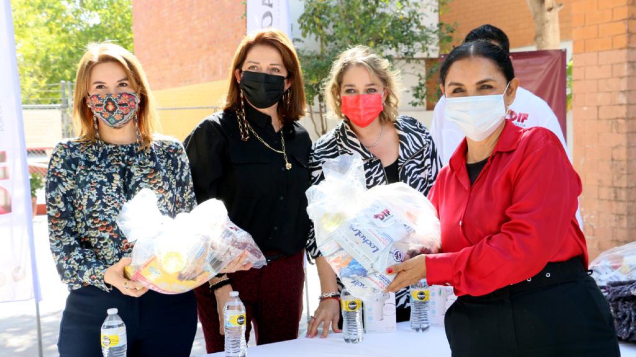 Ante la presencia de la Sra. Mónica Torres de Vargas Pdta. del Voluntariado Municipal, Rocha Ruíz hizo entrega de 500 cobijas y 1000 despensas para que sean distribuidas entre la población en situación vulnerable.