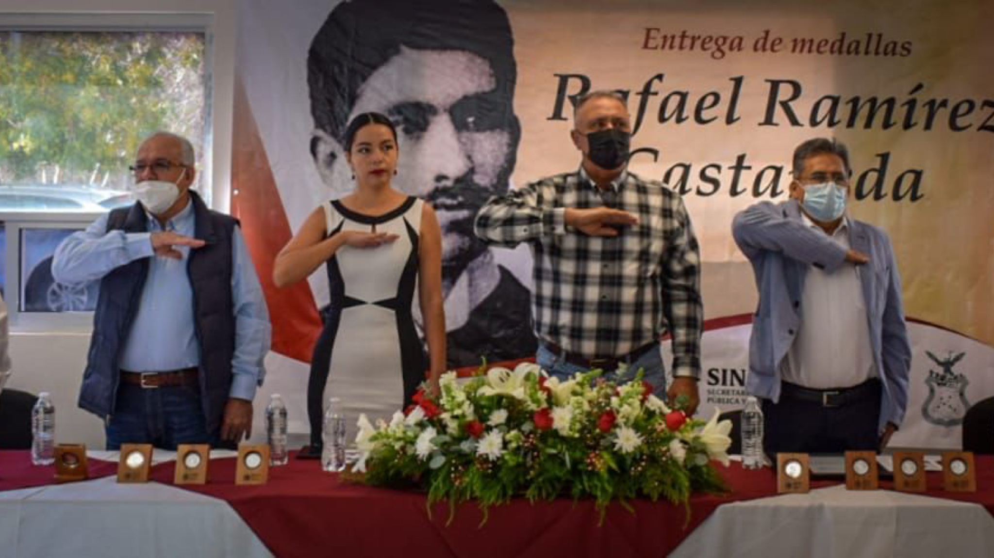 El Fuerte, Sinaloa, 18 de Febrero del 2022-. Galardonan a maestros con 28 y 30 años de servicio en el municipio de El Fuerte, el evento se realizó en las instalaciones de oficinas de servicios regionales, entregando medallas a más de 14 maestros por su entrega y dedicación en sus años como docentes.